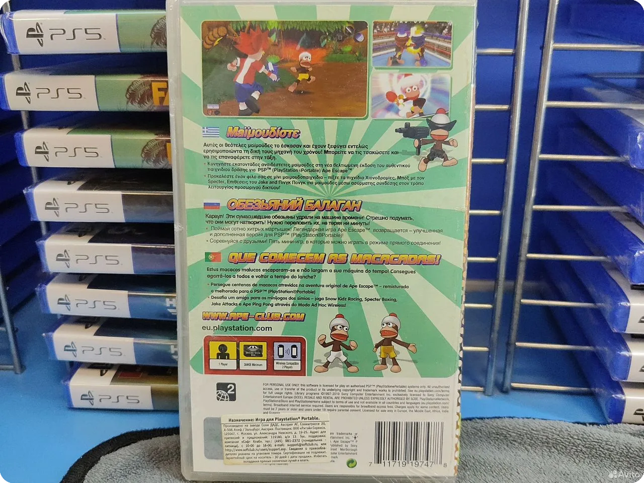 Представляем игру Ape Escape, доступную для платформы PlayStation Portable (PSP). Эта игра является частью серии приключенческих игр и предлагает игрокам увлекательный опыт исследования мира и решения головоломок в формате портативной консоли.