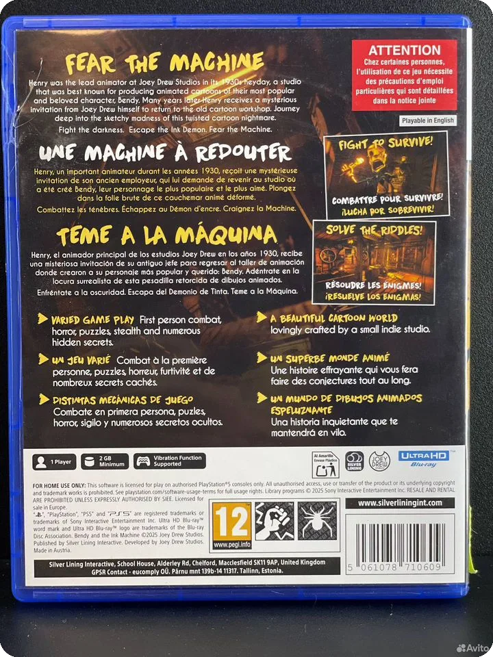 Bendy and The Ink Machine переносит вас в мир старой студии анимации, где творчество смешивается с кошмарами. Игровой процесс разработан таким образом, чтобы максимально раскрыть потенциал визуального стиля и звукового дизайна, создавая ощущение присутствия в старинном, слегка заброшенном мире. На PlayStation 5 игра оптимизирована для максимальной производительности, обеспечивая плавное взаимодействие с персонажами и окружением.