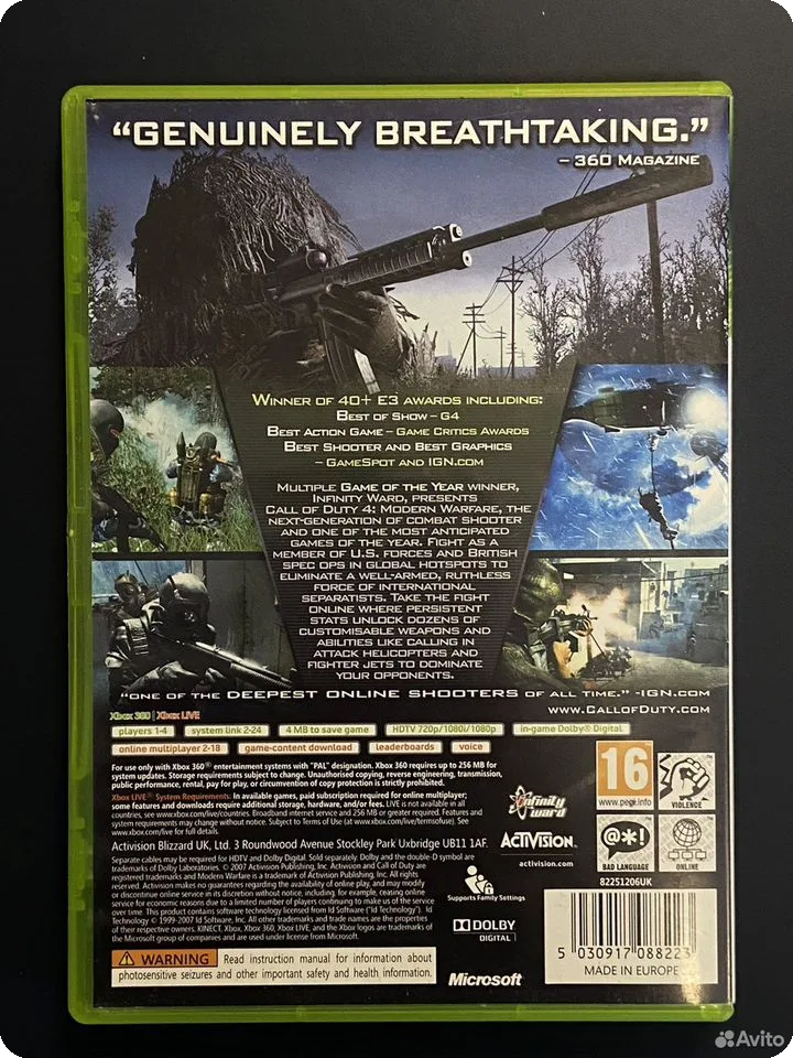 Представляем классическую игру Call of Duty 4 Modern Warfare, адаптированную и доступную для консоли Xbox 360. Эта игра является частью легендарной серии и предлагает интенсивный мультиплеерный экшен, который до сих пор остается актуальным для игроков, ценящих динамичный геймплей.