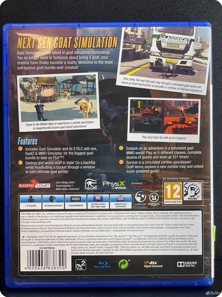 При покупке б/у товара важно учитывать, что состояние комплекта может отличаться от нового, но игра остается полноценным и увлекательным продуктом. Мы предлагаем этот комплект как доступную возможность для игроков, желающих получить удовольствие от Goat Simulator на своей PS4.