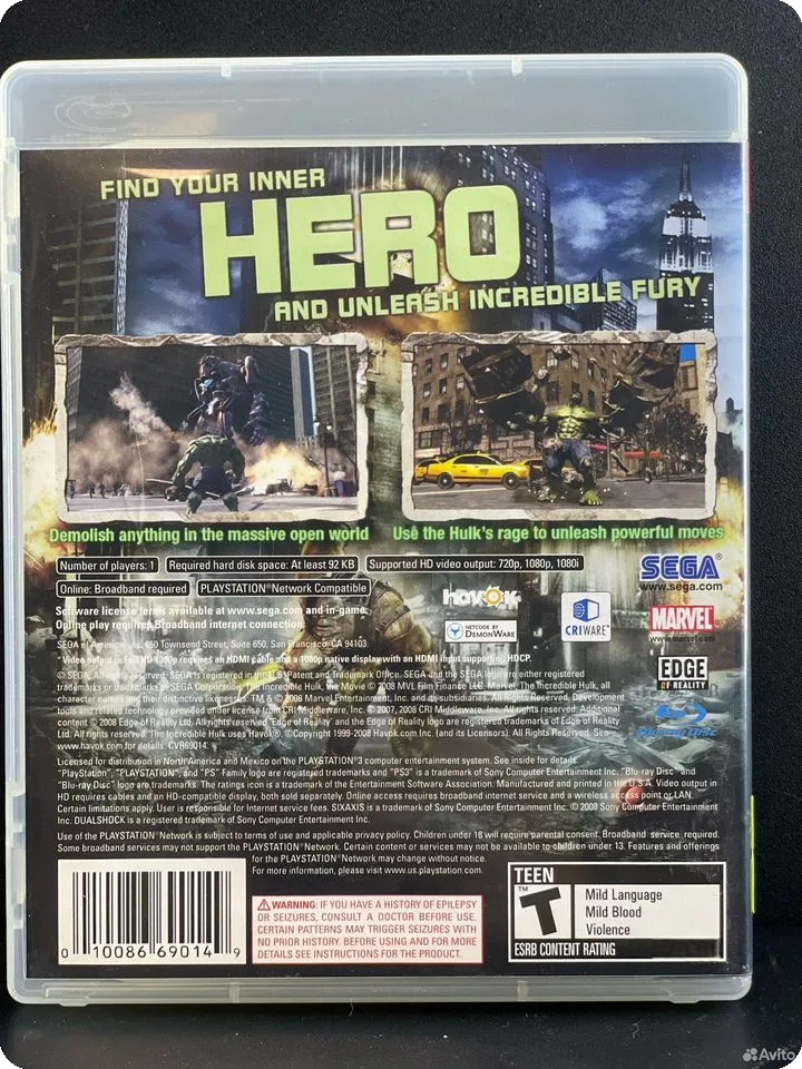 Теги: Hulk The Incredible, PS3 игра, игра для PlayStation 3, Hulk, диск PS3