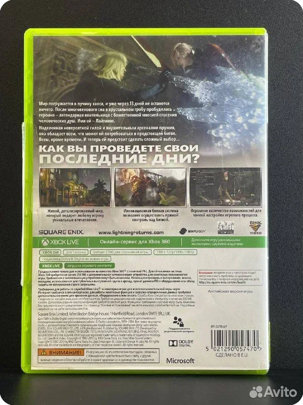 Данный продукт представляет собой цифровое или физическое издание игры Lightning Returns Final Fantasy XIII, оптимизированное для работы на платформе Xbox 360. Приобретая эту игру, вы получаете доступ к полному контенту с историей и миром Final Fantasy XIII.