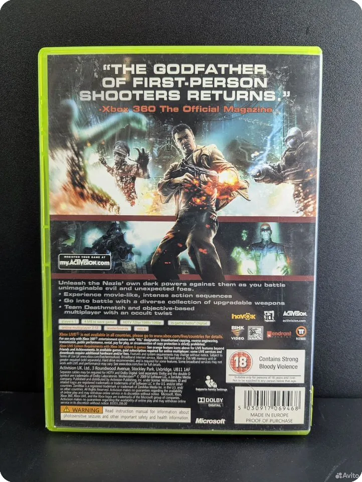 Погрузитесь в мрачный мир Второй мировой войны с культовой классикой Wolfenstein. Эта игра для Xbox 360 предлагает захватывающий геймплей, напряженную атмосферу и незабываемые сражения против нацистских сил.